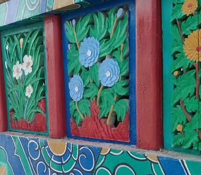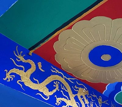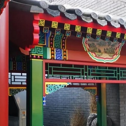 【北式】:依整體而言,較為俐落而帶貴氣,多用於宮殿建築,主要以「疊暈」的方式表現,圖騰以龍、鳳為主,色調濃重華麗,充分顯示莊嚴華麗的氣派。