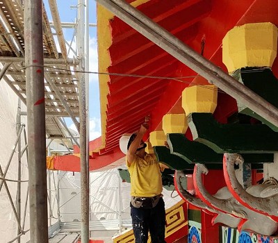 一項充滿傳統民間色彩的技藝,廟宇僱請彩繪畫師,將寺廟妝點成充滿神仙故事、宗教氛圍的美麗空間。這些畫作滿懷對神明的頌揚,以及對信眾的美好祝福。